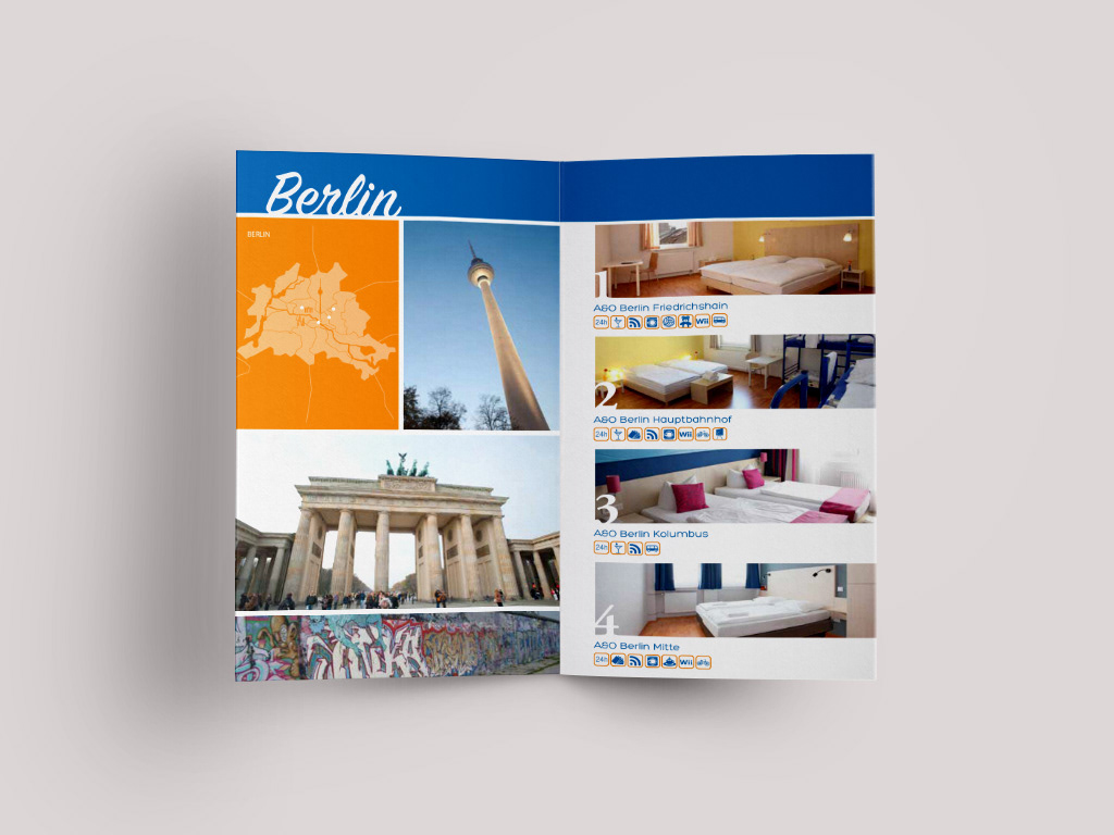I designed this brochure for a European hostel and hotel company looking for a more modern look.